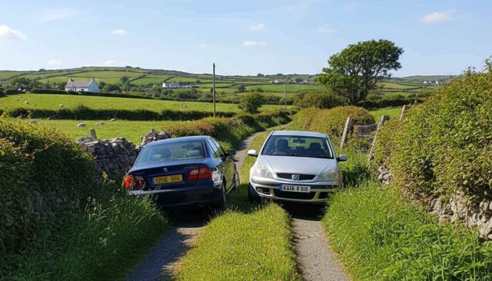 - Rural roads can be narrow, with hedges and stone walls close in.